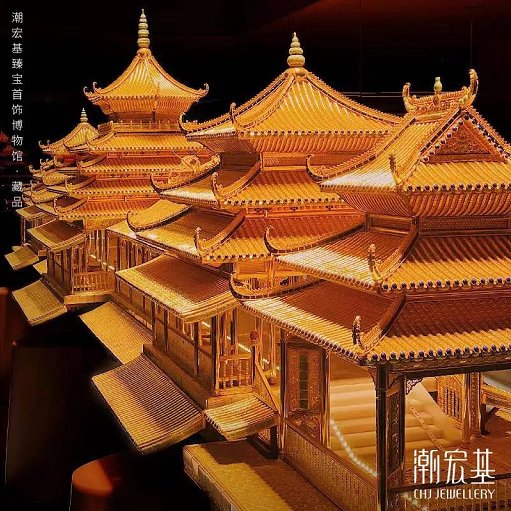 回到潮宏基的这场发布会,其中最大的亮点,还是依托其极致的传统工艺呈现:非遗花丝工艺、镇馆之宝“花丝风雨桥”的复刻。